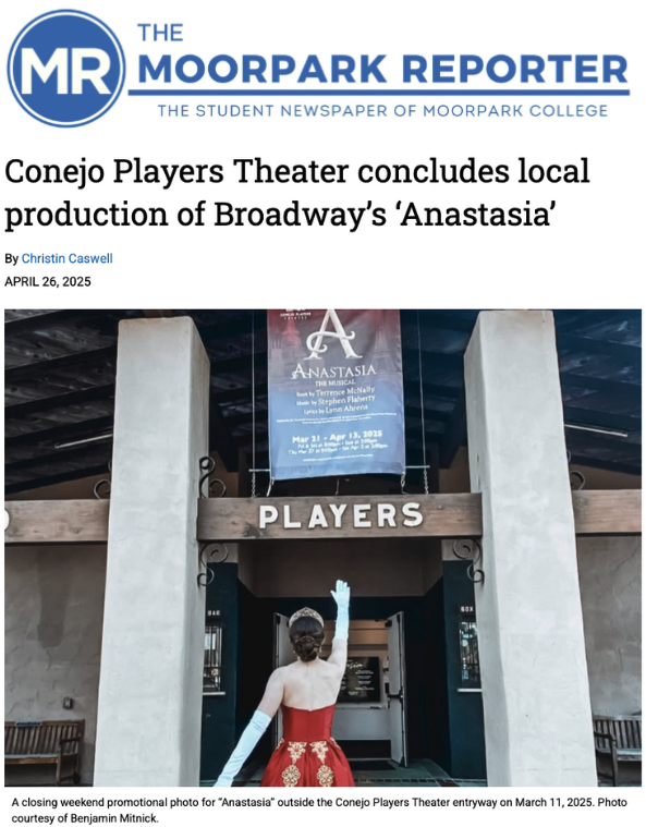 The Moorpark Reporter took a look at our run of Anastasia and talked with director Erin Fagundes and CPT president Dana Marley-Kolb.