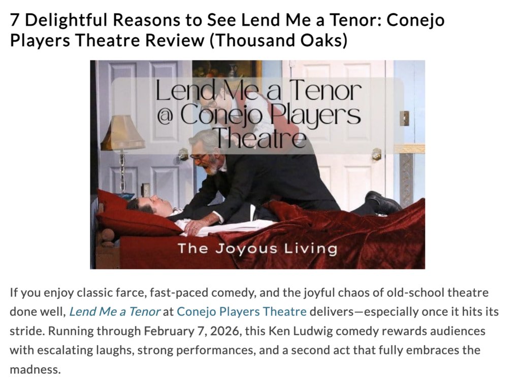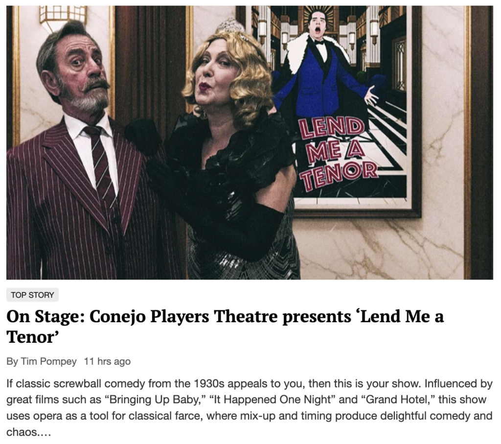 Our 2026 season opening play, Lend Me A Tenor, is a hit with the critics! Check out these reviews: