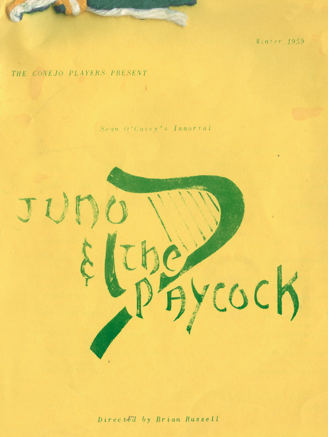 Show TimesWinter 1959About the showPresented through special arrangement with Sean O'Casey EstateDirected by: Brian Russell Produced by: Conejo Players Set in a Dublin tenement during the Irish Civil War, that follows the impoverished Boyle family as they navigate poverty, political strife, and personal betrayal, particularly after a false rumor of an inheritance brings temporary hope that quickly turns to tragedy, culminating in the death of their son and the departure of the resilient matriarch, Juno, from her lazy husband, “Captain” Jack. |
