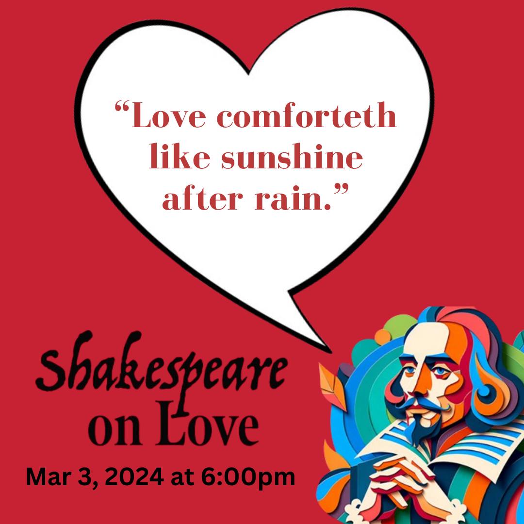 Show TimesMarch 3, 2024 at 6pm About the showPresented through special arrangement with Conejo Players Reader TheatreDirected by: Alan Waserman Produced by: Paul Babb & Scott Quintard Join us as we endeavor to honor the intricate tapestry of love through the profound lens of William Shakespeare’s timeless works. Whether it’s the tender nuances of a budding love or the tumultuous storms of passion, our talented cast will bring to life some of Shakespeare’s most celebrated scenes, soliloquies, and sonnets to craft a rich narrative that explores the diverse complexities of love. We’re going to delve into the various ways Shakespeare explored, employed, and manipulated the themes of love. The evening is a compilation of scenes, sonnets and readings of Shakespeare. Readers Theatre offers a unique theatrical experience – a staged reading in which actors present a play or musical in front of an audience without sets, costumes or other production elements. The actors are not off-book, which means they typically have the script in hand while they perform. It allows the audience to focus on the story and the characters. Attendance is free of charge – but CPT donations are welcome. |